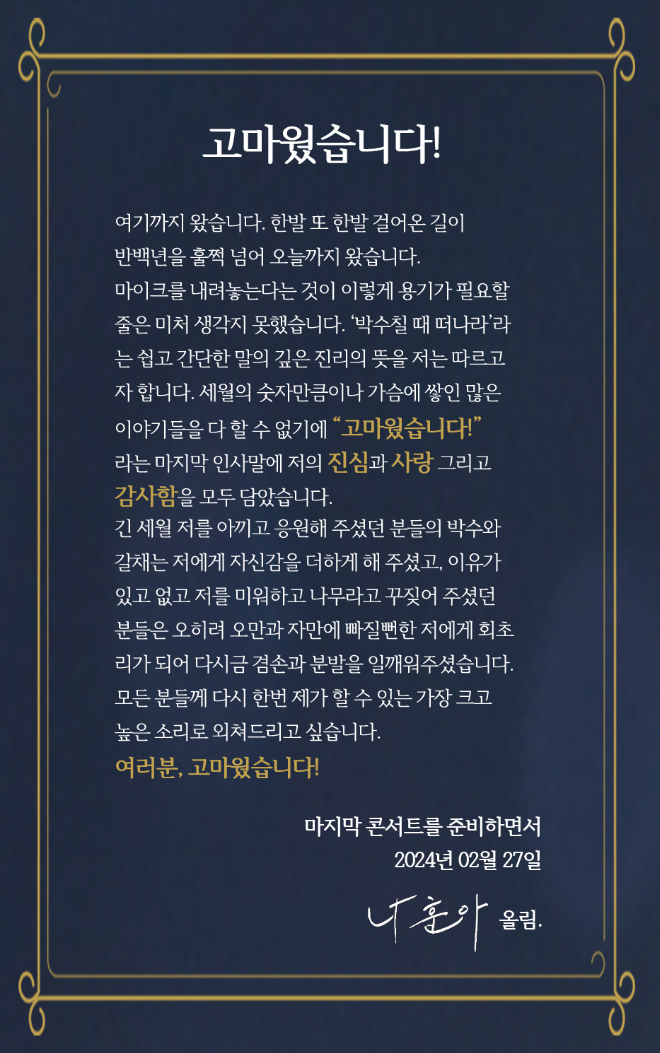 마지막 인사말은 진심과 사랑 그리고 감사함을 담아 공연을 준비해하셨다고 합니다.