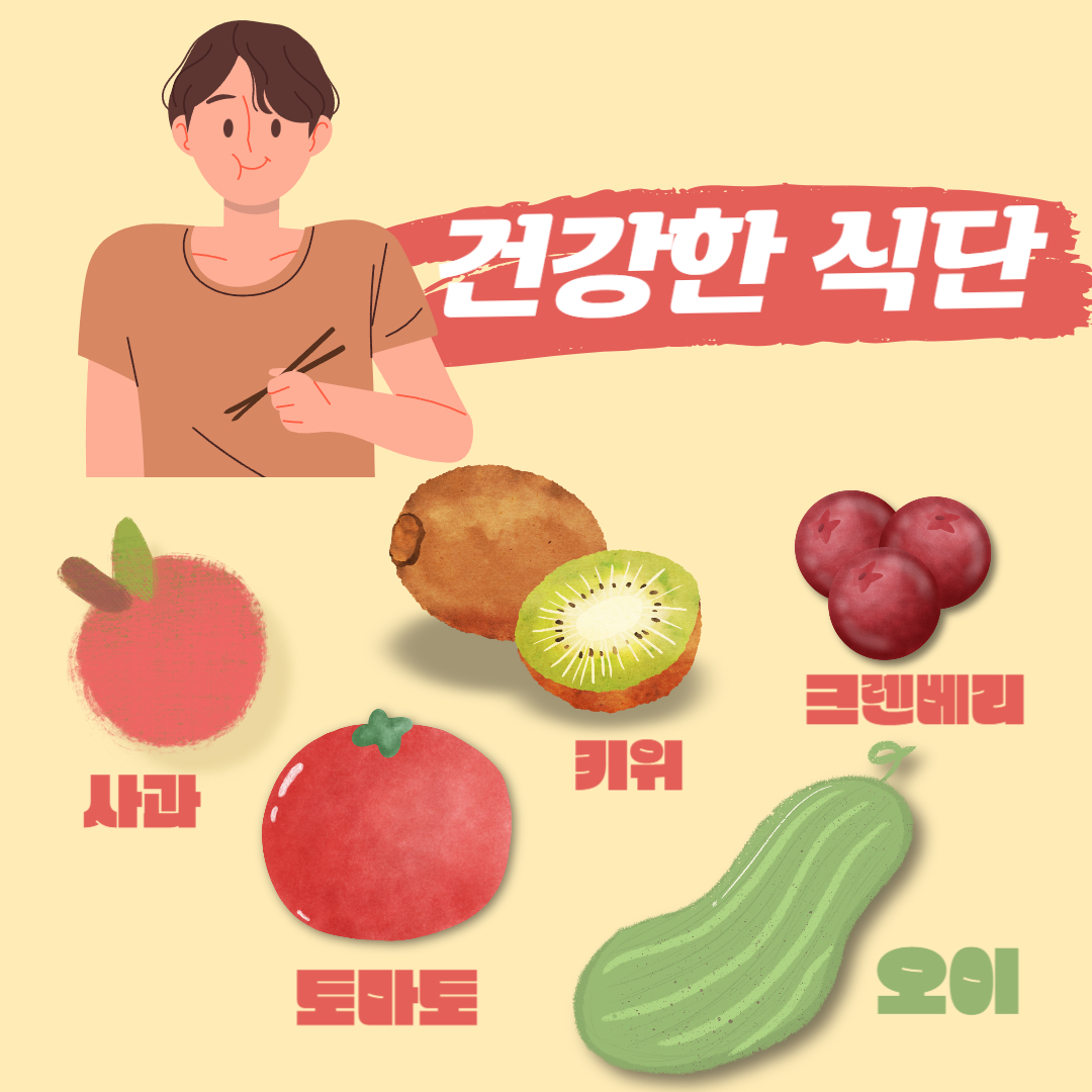 - 비타민 C가 풍부한 과일과 채소: 비타민 C는 소변의 pH를 낮춰 세균의 생장을 억제할 수 있습니다.