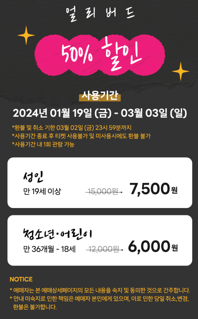 -얼리버드티켓 사용 기간: 24년 1월 19일 금요일 ~ 24년 3월 3일까지