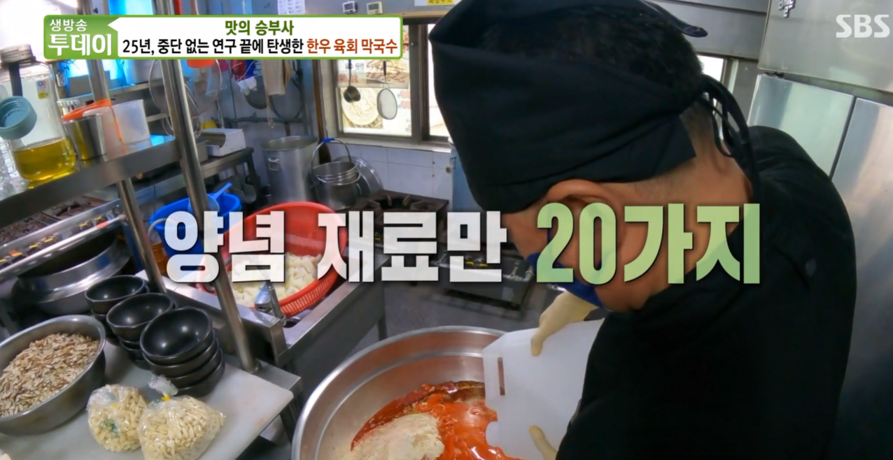 막국수 양념이 재료만 20가지라고 하시네요