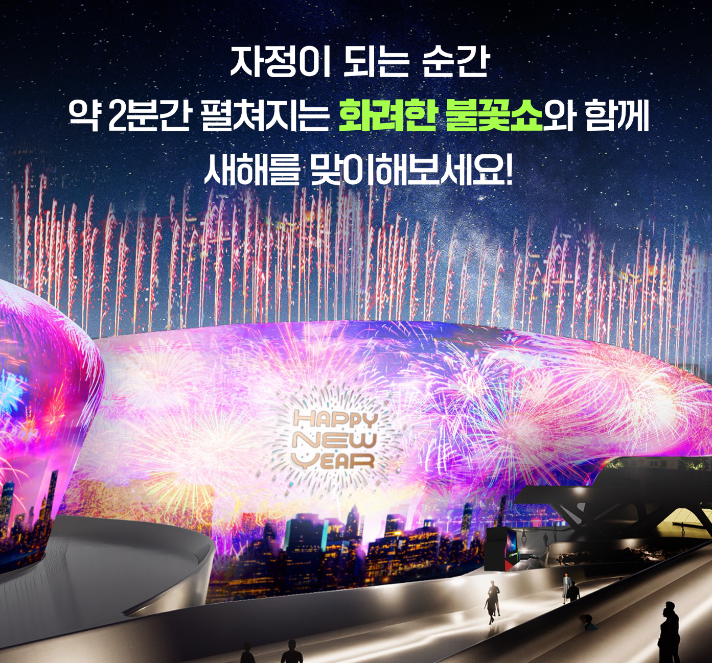 행사기간은 23년 12월 31일 저녁 11:00부터 24년 1월 1일 새벽 1시 30까지 진행되면 무료로 관람이 가능하다고 합니다.