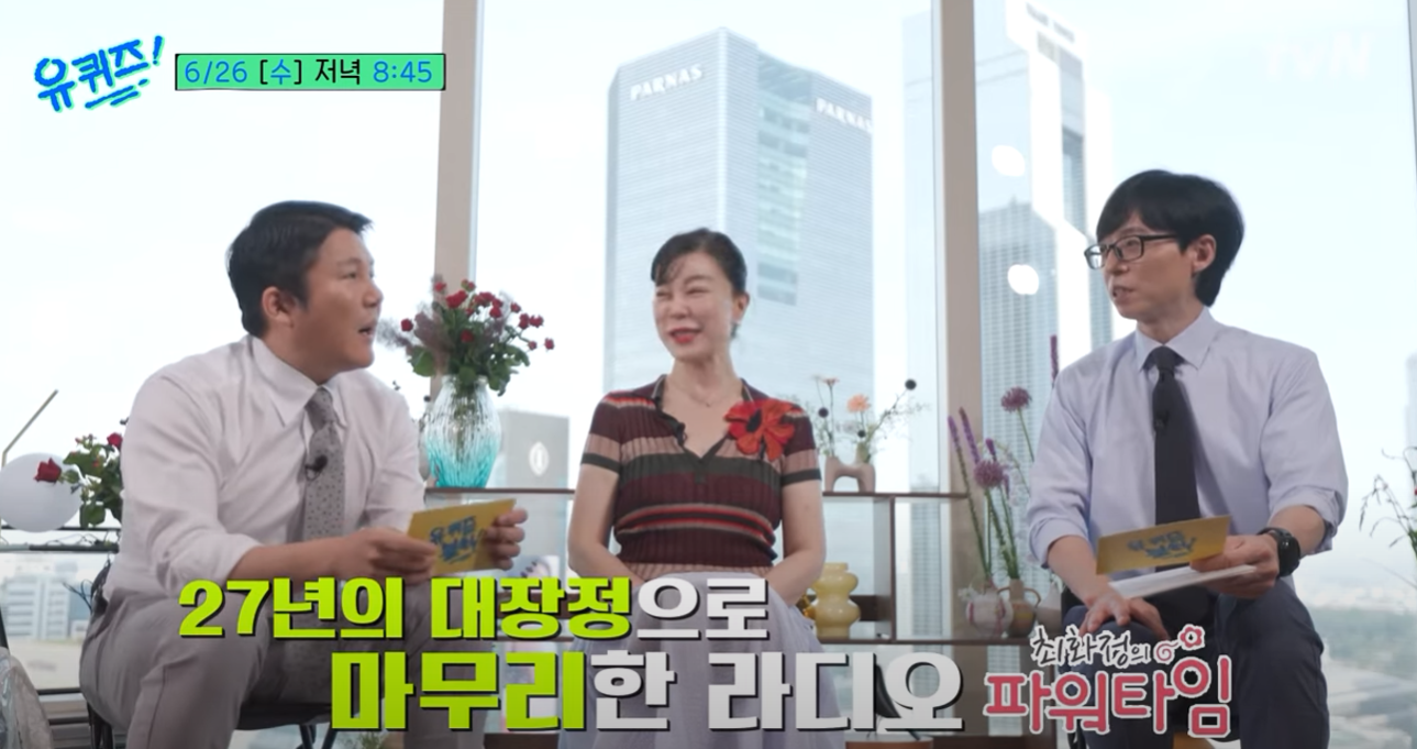 유퀴즈에 6월 26일 수요일 오후 8시 45분에 최화정이 출연한다고 합니다.