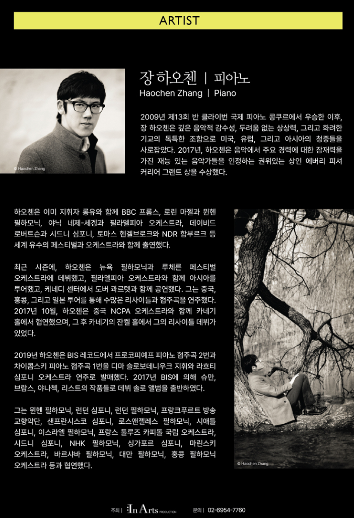 지난 2022년에는 BIS 레이블에서 필라델피아 오케스트라와 함께 베토벤 피아노 협주곡 전곡 음반을 발매하여 "믿고 들을 수 있는 연주자"라는 호평을 받았습니다. 장 하오첸 피아노 리사이틀 티켓예매와 공연일정 정리해 보겠습니다.