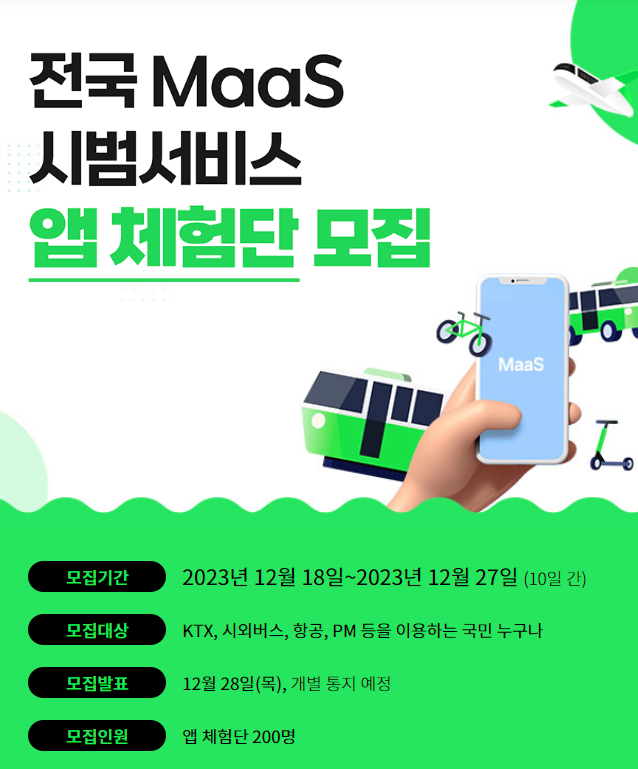 1. 전국 Maas 시범 서비스 앱 체험단 모집과 활동해택
