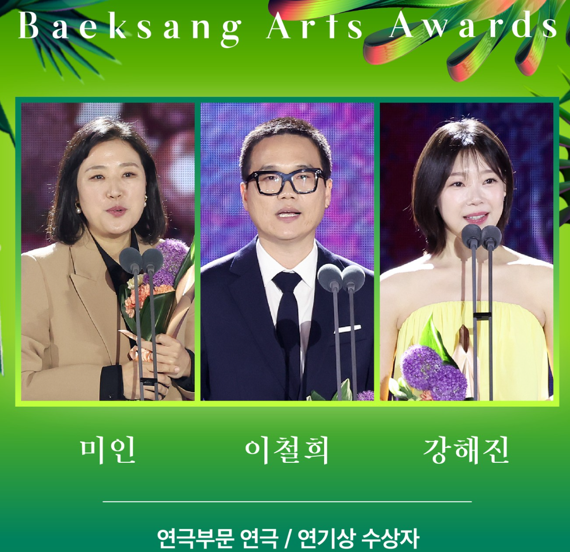 연극부문 백상연극상 은미인 극단 (‘아들에게’)이며 연극부문 연기상 은강해진 (‘아들에게’)이며 연극부문 젊은 연극상은 이철희 연출 (‘옛 전통의 새로운 움직임-맹’)이며 구찌 임팩트 어워드는 ‘너와 나’이며 프리즘 인기상은 김수현, 안유진이 수상하셨습니다.