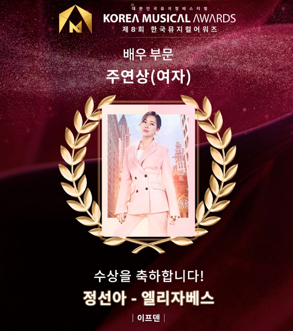 제8 회 한국 뮤지컬 어워즈 주연상(여자)에는 민경아(레드북), 아이비(물랑루주!), 유리아(멤피스), 이자람(순신), 정선아(이프덴)가 후보로 올랐습니다. 제8 회 한국 뮤지컬 어워즈 주연상(남자)에는 김준수(데스노트), 박강현(멤피스), 조승우(오페라의 유령), 최재림(오페라의 유령), 홍광호(물랑루주!)가 후보에 올랐으며 배우부문 남자주연상은 유령의 조승우님 수상하셨습니다. 배우부문 여자 주연상은 이프텐에 정선아(엘리자베스)님이 수상하셨습니다.