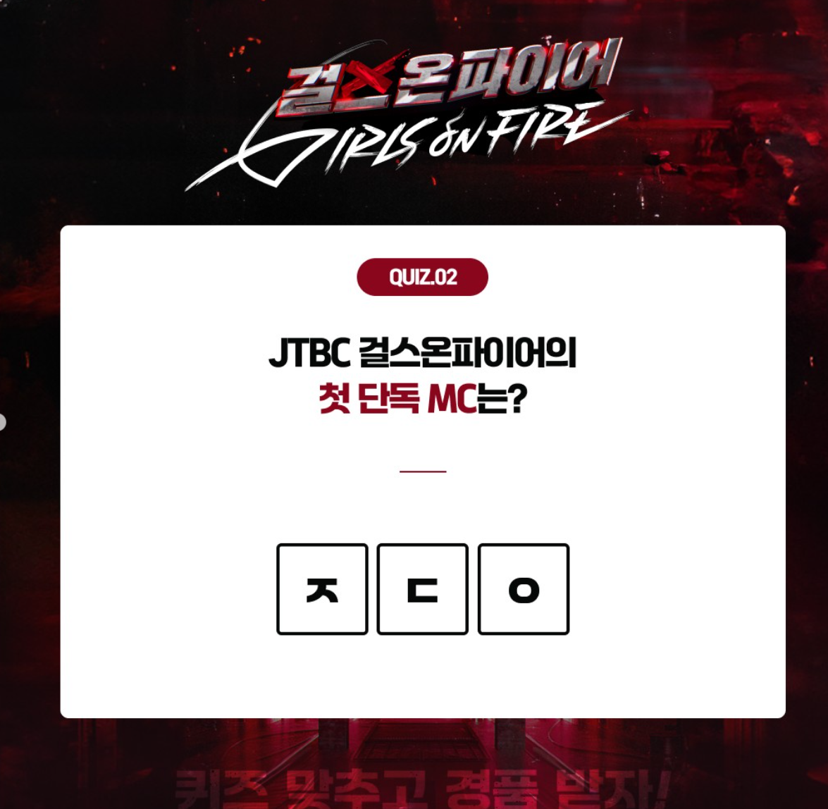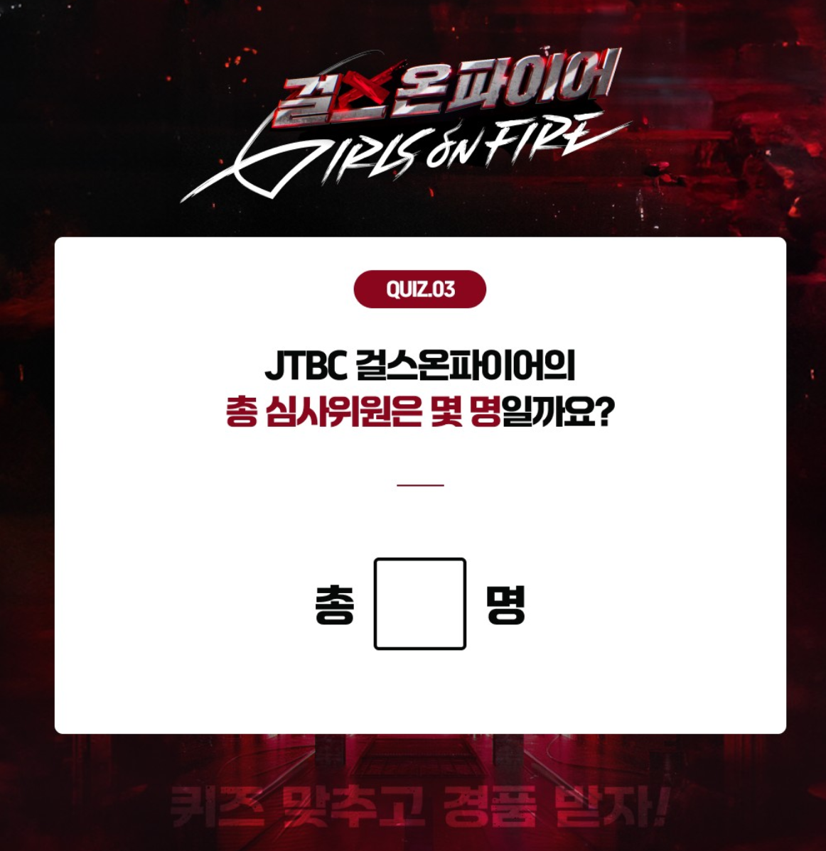 - 걸스 온 파이어방청 당첨자 발표는 2024년 5월 20일에 발표합니다.(당첨자에 한해 개별안내 예정)