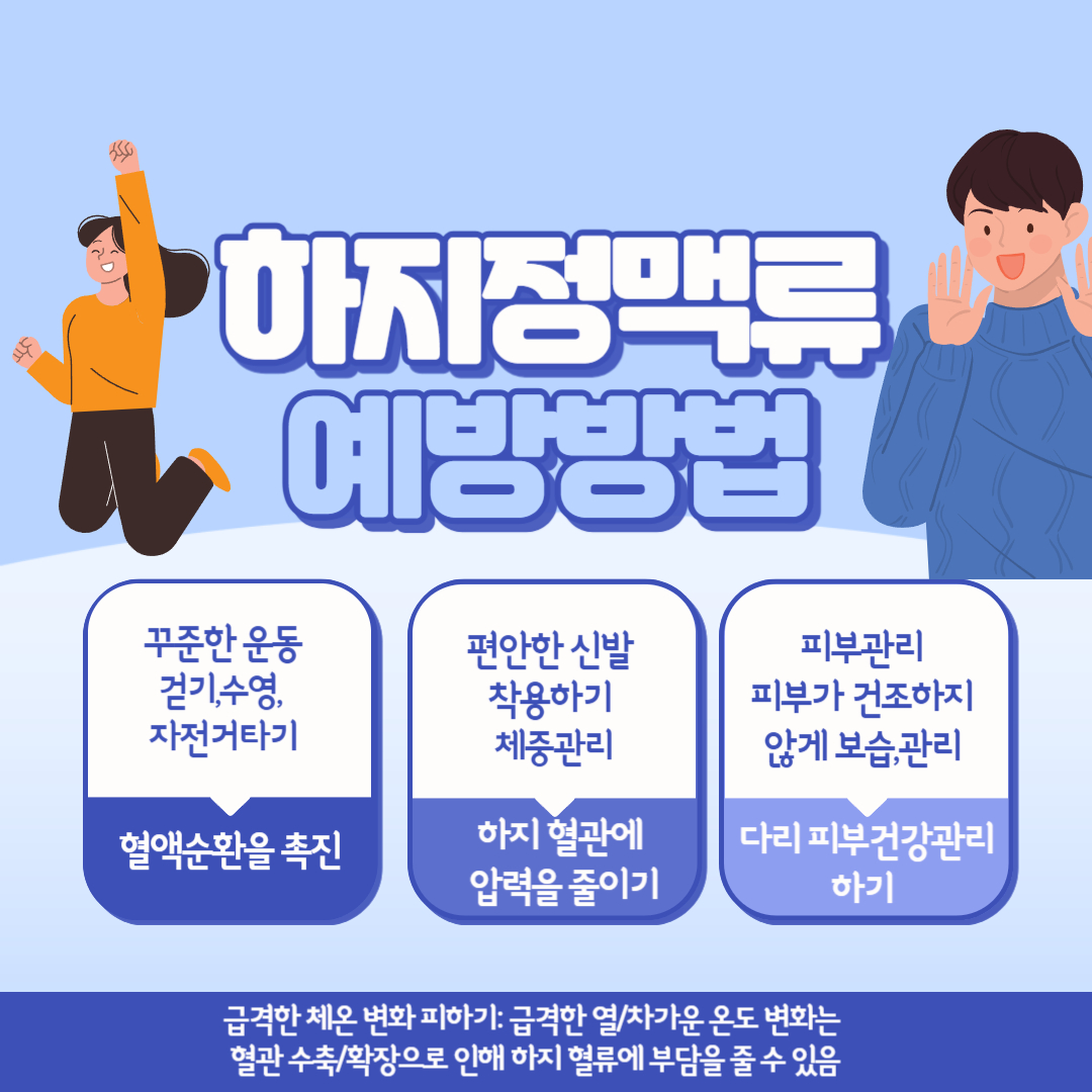 - 편안한 신발 착용: 너무 좁거나 높은 굽의 신발은 하지 혈관에 압력을 가할 수 있으므로 편안하고 맞춤형 신발을 착용하는 것이 좋습니다.