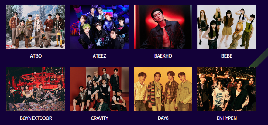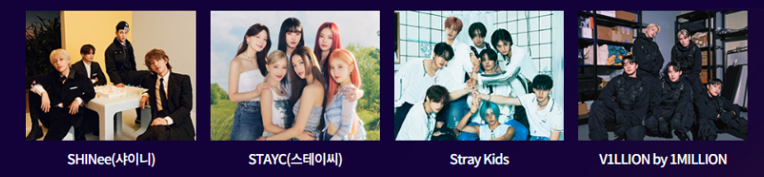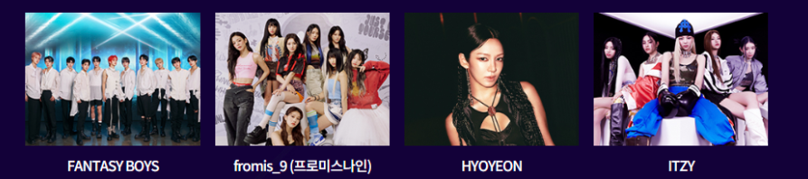 앤팀, (여자) 아이들, 2am, 에스파, ATBO, 에이티즈, 백호, 베베, 보이넥스트도어, 크래비티, 데이식스, 엔하이픈, 판타지보이즈, 프로미스나인, 효연, 있지, 아이브, 루시, NCT 127, NCT DREAM, NCT U, 니쥬, 엔믹스, 라이즈, 샤이니, 스테이씨, 스트레이키즈, V1 LLION by 1 MILLION, 제로베이스원, 권은비, 다이내믹 듀오, 더보이즈, 영탁, 원탑, 윤상, 이영지, 이적, 장민호, 주주 시크릿, 케플러, 폴킴 등이 출연을 확정 지었습니다.