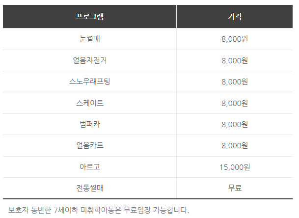 - 보호자 동반한 7세 이하 미취아동은 무료입장 가능합니다.
