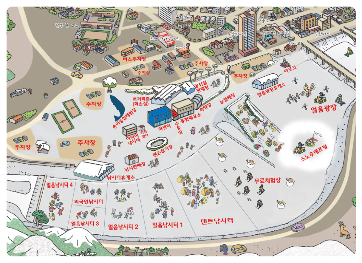 1) 평창송어 축제 행사장은 지도는 다음과 같습니다.