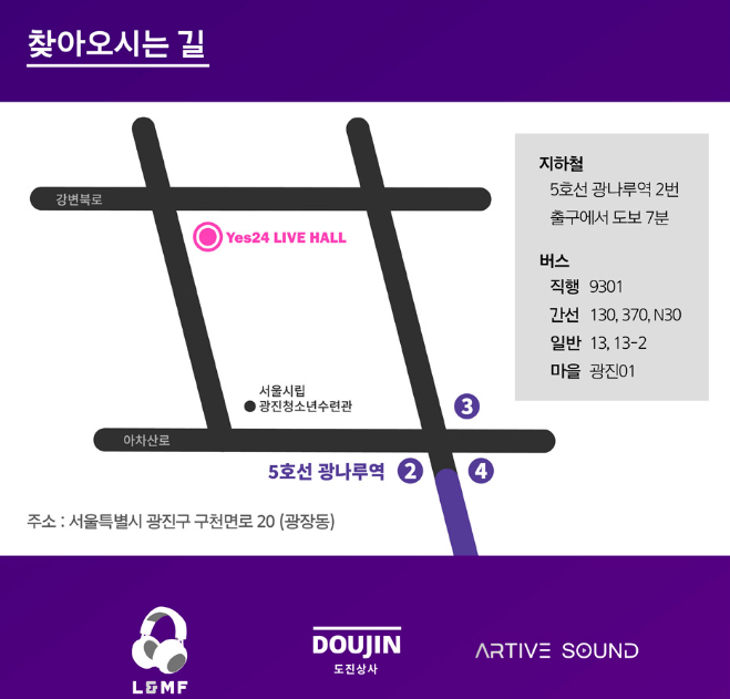 1) Live & Music Festival 공연장소는 YES 24 LIVE HALL에서 진행됩니다.